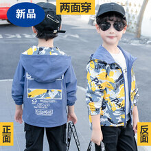新品轻奢侈品牌高端同款男童外套春装2021年新款中大儿童春季韩版男孩春秋款洋气潮冲锋衣漂亮小孩子穿的 蓝色 120cm