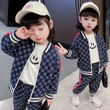 熊迪明2021春秋新款休闲运动服男女宝宝童装中小童1-9岁时尚撞色两件套字母开衫外套 蓝色 120