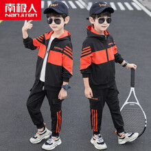 南极人男童套装秋装2021新款品牌童装3-15岁小男孩帅气休闲运动装衣服中大童长袖拼接连帽外套卫裤 桔色 120码 建议120厘米左右