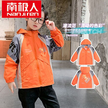 南极人童装男童外套秋装儿童洋气秋季新款小男孩休闲冲锋衣夹克拉链连帽外套防风中大童3-10岁 桔色 100