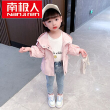 南极人童装女童外套秋装2021秋季新款儿童洋气时髦小女孩休闲冲锋衣连帽夹克外套防风上衣中小童1-8岁 粉色 110