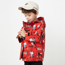 巴拉巴拉童装宝宝外套男童春装儿童小童连帽冲锋衣满印潮洋气百搭 红黑色调0369 120cm
