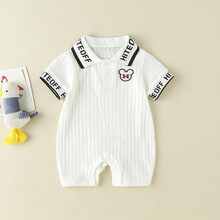 水花童 婴儿夏天网红短袖薄款纯棉衣服周岁男女宝宝连体衣夏季外出服学院风小绅士爬服潮 智婴美&ZPX1114 73码/4-8个月(6-8kg)
