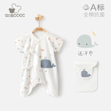 乖奇熊 夏季0-3-6个月新生儿纯棉衣服婴儿短袖绑带蝴蝶衣宝宝连体衣 小鲸鱼 66cm