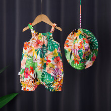 婴儿吊带连体衣服女碎花夏季棉绸超洋气吊带女孩夏装无袖宝宝连体哈衣睡衣 波西米亚风吊带连体 绿色 送帽子 80cm