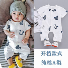 Majieshi乐园男宝宝连体服短袖婴儿夏薄款女衣服新生儿连体衣开档哈衣六一儿童节 蓝色米奇【开裆】 80码【建议20斤内】