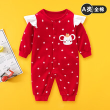 红色婴儿衣服。满月宝宝连体衣