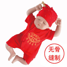 福郎特新生女婴儿连体百天满月衣服公主春秋季装男孩猪宝宝红色百岁 长命百岁锁无骨(夏季短袖+帽子) 袜子 66cm(66(10-13斤))