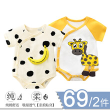 迪迪熊日记 2件装婴儿包屁衣新生儿连体衣夏季短袖三角哈衣男女宝宝纯棉衣服薄款0-3-6-8-12个月 短袖三角(香蕉+长颈鹿) 59CM