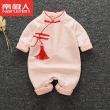 南极人品牌0~12月婴儿衣服满月百天中国风公主女宝宝旗袍哈衣新生儿连体衣春季唐装 粉色 73cm