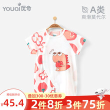 优奇婴儿衣服夏季薄款哈衣男女宝宝夏装潮短袖连体衣空调睡衣爬服 可爱红 66cm(推荐身高62cm--68cm)
