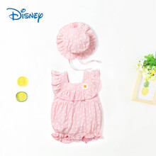 【时髦婴童】迪士尼旗舰新品婴儿哈衣夏季薄款短袖包屁衣服女宝宝连体衣公主可爱超萌网红夏装 浅粉色满印雏菊 73cm