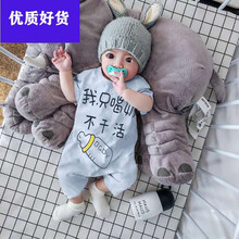 蔻翔℠〮仙美搭配婴儿连体衣棉薄款0-16男女宝宝短袖连体哈衣夏装爬服新生儿衣服 奶瓶蓝色 短袖 90码建议12-16个月