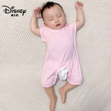 迪士尼放心品牌 婴儿衣服夏天穿的男女宝宝夏季连体衣新生儿薄款爬服莫代尔无骨无痕短袖中裤外出服 粉红色莫代尔连体开档 73cm