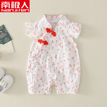 南极人童装【高品质特价】婴儿衣服夏装薄款公主满月一周岁汉服短袖中国风旗袍女宝宝连体衣 白色 80