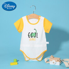 迪士尼(Disney)婴儿短袖包屁衣夏季薄款爬服三角哈衣新生儿夏装睡衣服宝宝连体衣官方旗舰婴儿穿的衣 恐龙A款--薄棉 66cm