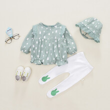 水花童 宝宝2021秋天女0-1岁婴儿连体衣哈衣秋公主0-3-4-5-6个月女婴春秋装爬服 兔子三件套 绿色 80cm