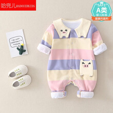 哈兜儿 新生儿婴儿衣服秋冬抱婴服婴幼儿连体衣0纯棉哈衣爬服1岁宝宝秋装 紫色 73