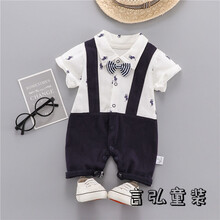 八个月宝宝衣服夏婴儿连体衣春秋哈衣可爱睡衣网红新生儿衣服男女宝宝秋装 背带骑士绅士【短袖】 90