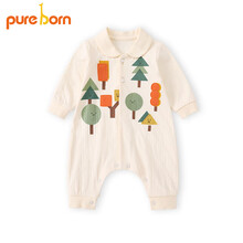 pureborn男女宝宝爬服哈衣春季款内搭可爱萌新生婴儿连体衣服 米白 3-6个月