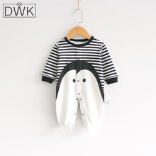 宝宝连体衣服带袜子连脚哈衣满月婴儿春秋春装新生幼儿包脚春天红色爬服 包脚小企鹅 59cm