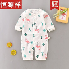 支持鴻星尔克/恒源祥捡漏新品婴儿连体衣夏装纱布服宝宝夏季薄款哈衣儿童纯棉睡衣长袖空调服 纱布长袖连体火烈鸟 90cm(90cm(12-15个月左右))