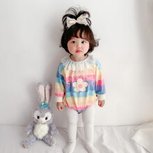 wuawua婴儿衣服春装蕾丝婴儿连体衣女宝宝小花彩虹条纹哈衣新生儿包屁衣 彩虹花花 73cm