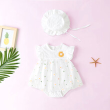 迪士尼高端轻奢女宝宝夏装哈衣婴儿连体衣服薄款短袖幼儿包屁衣夏季公主旗舰官方专卖 白色雏菊哈衣 90cm
