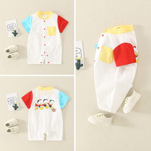 吉杰猫(JEFFREY CAT)婴儿连体衣宝宝卡通短袖新生儿夏装薄款韩版可爱超萌外出抱衣爬服 白色 66cm(适合8-12斤)