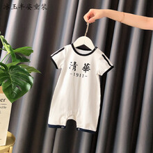 清华北大婴儿服婴儿夏装连体衣宝宝爬爬服新生儿清华北大衣服网红包屁哈衣空调服 清华藏青边 80cm