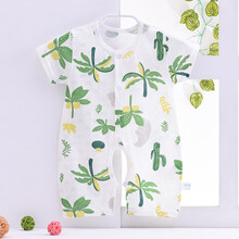 连体开裆裤男宝宝婴儿衣服竹纤维睡衣新生儿哈衣空调服女短袖薄款棉夏 树哈衣 80cm
