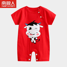 南极人官方旗舰新生婴儿连体衣纯棉2021春夏季薄款0-3宝宝爬服哈衣6-12个月1-2岁小孩子夏天穿 .短爬B17红色牛牛 90码