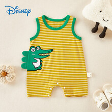 【潮萌哈衣】迪士尼婴儿哈衣夏装薄款满月百天宝宝背心连体衣纯棉外出无袖包屁衣爬服 黄色 73cm