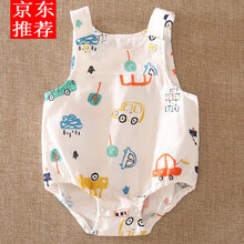 贝舒豆21夏季新款婴儿三角哈衣 男女宝宝纯棉纱布包屁衣 吊带连体睡衣薄款夏季小孩子穿的 白色汽车 73cm(73码建议年龄2-4个月)
