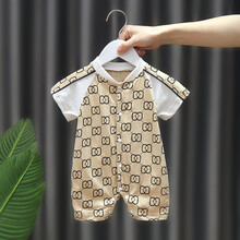 迪士尼高端轻奢男宝宝夏季哈衣0-1岁婴儿假两件纯棉洋气半袖连体衣薄款夏装衣服9旗舰官方专卖 SBT2118-咖色 66cm