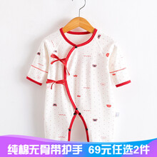 【无骨带护手】婴儿连体衣精梳纯棉四季男女宝宝哈衣系带春单层薄款爬服0-3-6月新生儿衣服防抓脸和尚服 红色英伦款 52码(推荐0-2月)