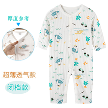 婴儿连体衣夏季薄款新生儿哈衣服空调长袖初生宝宝和尚服纯棉夏装 【长袖连体衣】夏日度假 66cm