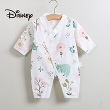 迪士尼(Disney)婴儿睡衣春夏薄款爬服哈衣男女宝宝衣服新生儿和尚服纱布连体衣夏 纱布和服连体衣花园小熊 52cm(52码建议0-3个月)