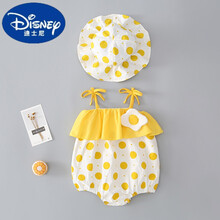 新品 迪士尼品牌宝宝3-12月宝宝穿的网红婴儿包屁衣夏季连体衣薄款外出套装公主三角哈衣服女宝宝爬服 黄色 80cm