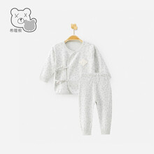 希哩熊婴儿衣服宝宝连体衣和尚服2021春夏1-3个月新生儿纯棉分体哈衣初生儿打底内衣绑带保暖家居服 浅花灰 59