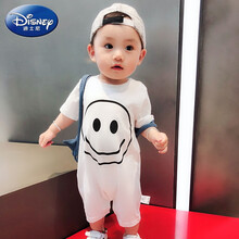 迪士尼【六一特价】婴儿连体衣外出薄款夏季哈衣超萌洋气可爱宝宝衣服女婴儿服夏装小孩子穿的 白色笑脸短袖哈衣 80cm