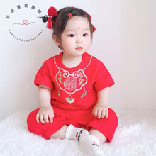 百天宝宝衣服男宝百日宴夏季宝宝周岁衣服男女童婴儿百天满月生日抓周礼服春秋唐装连体衣 玲花璎珞 单件套头连体 73码:70-76cm/16-19斤/7-12月