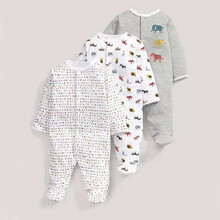 宝宝连体衣服带袜子婴儿连体衣带脚连脚新生儿衣服春秋款连袜包脚哈衣 斑马大象三件装。 0-3M,参考身高50-59CM