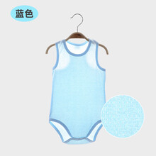 花花宝贝 夏天婴儿童连体衣睡衣男女宝宝大码纯棉工字背心三角哈衣包屁衣夏季无袖镂空超薄爬衣0-1-5岁 蓝色 120cm