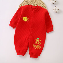 婴儿连体衣纯棉春秋三层保暖衣无骨新生儿衣服初生男女宝宝哈衣0-1岁夹棉爬服大红色满月百天周岁服 元宝 73码