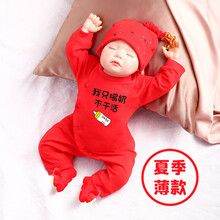 法芭兔婴儿连体衣新生秋季男婴儿喜庆连体衣百天服满月公主中国风周岁女宝宝红色夏季薄款套装 夏季薄款(我只喝奶不干活+帽送袜) 59cm