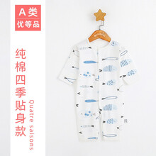 法国mafabebe婴儿衣服连体衣夏季男女宝宝衣服0-3-6-9-12个月婴幼儿短袖哈衣爬服空调服 长款(游鱼系列)蓝 80码