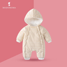 modomoma新生儿用品婴儿衣服连体衣满月礼物初生男女宝宝春装连帽棉服 纯棉爬服+帽【粉】 80【建议9-12个月】
