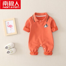 南极人婴儿衣服纯棉连体衣春秋装新生儿衣服可爱百天男女宝宝哈衣0-3-6-12个月外出服薄款哈衣爬服 桔红色 66