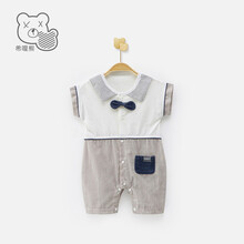 希哩熊婴儿衣服夏季连体衣纯棉新生儿宝宝哈衣可爱爬服薄棉短袖透气服装网红无骨缝制偏开 浅灰 73